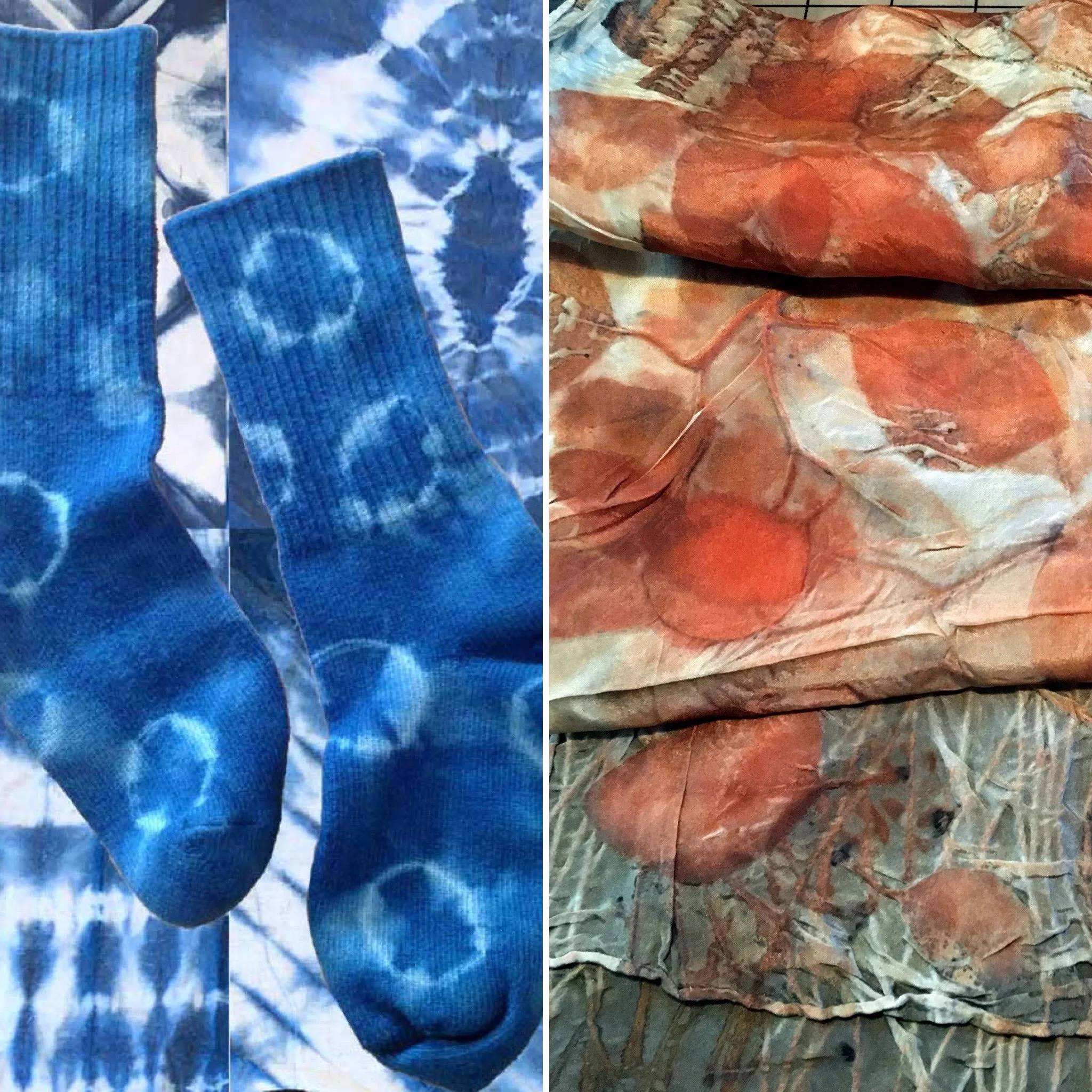It’s fast, it’s magical and it’s everyone’s favorite blue. Learn about indigo dyeing and explore various Shibori resist methods. When you’re ready to dye you will see the wonder of indigo as your creation emerges from the dye bath colored green and turn blue before your eyes. You will be using a synthetic indigo vat to dye 1 pairs of bamboo socks and a cotton bandana (27” x 27”). You can also bring items from home to upcycle, like napkins with stains or an old (or new) t-shirt or two. Please wear old clothes.